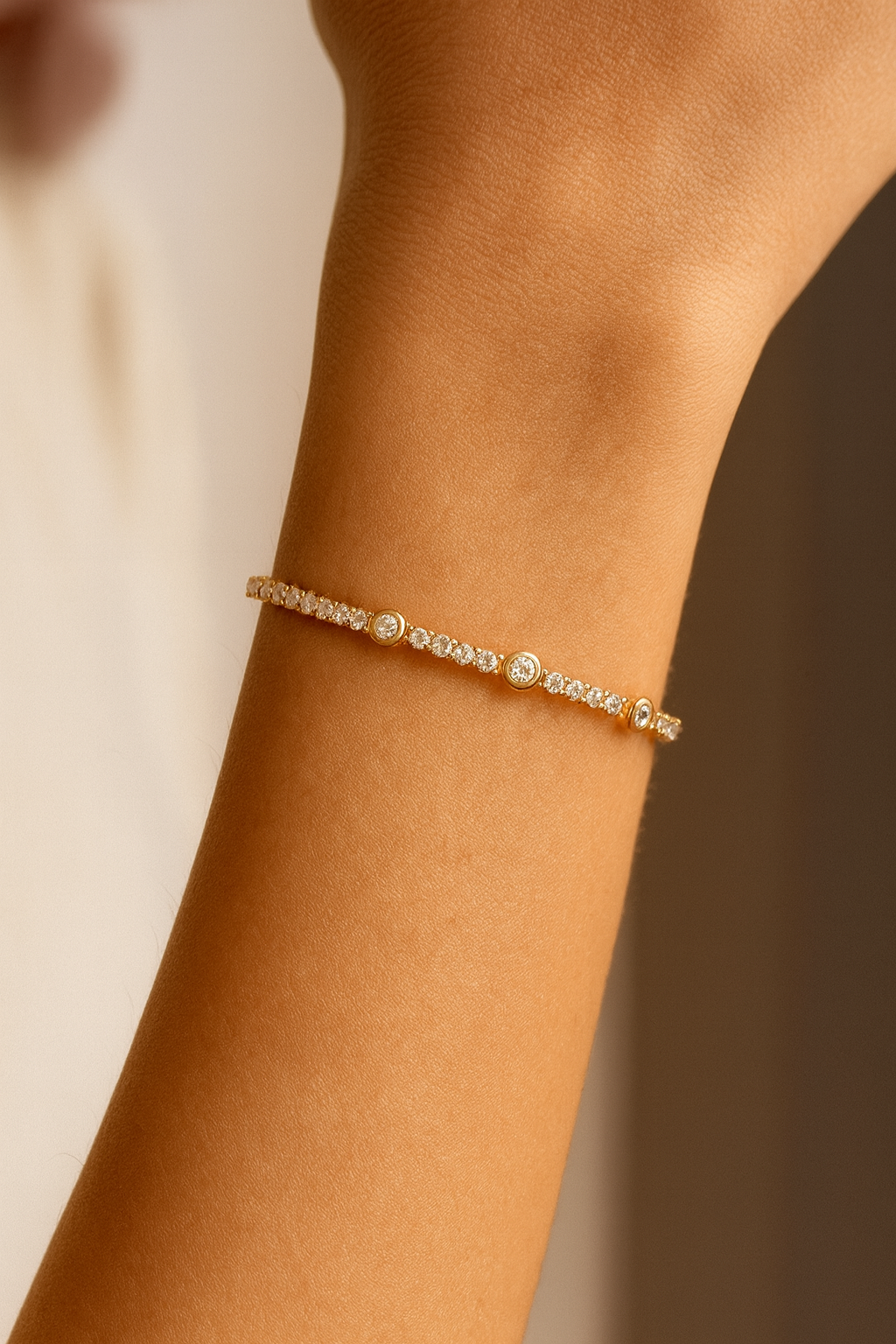 14K Altın Kaplama Yuvarlak Taş Bileklik