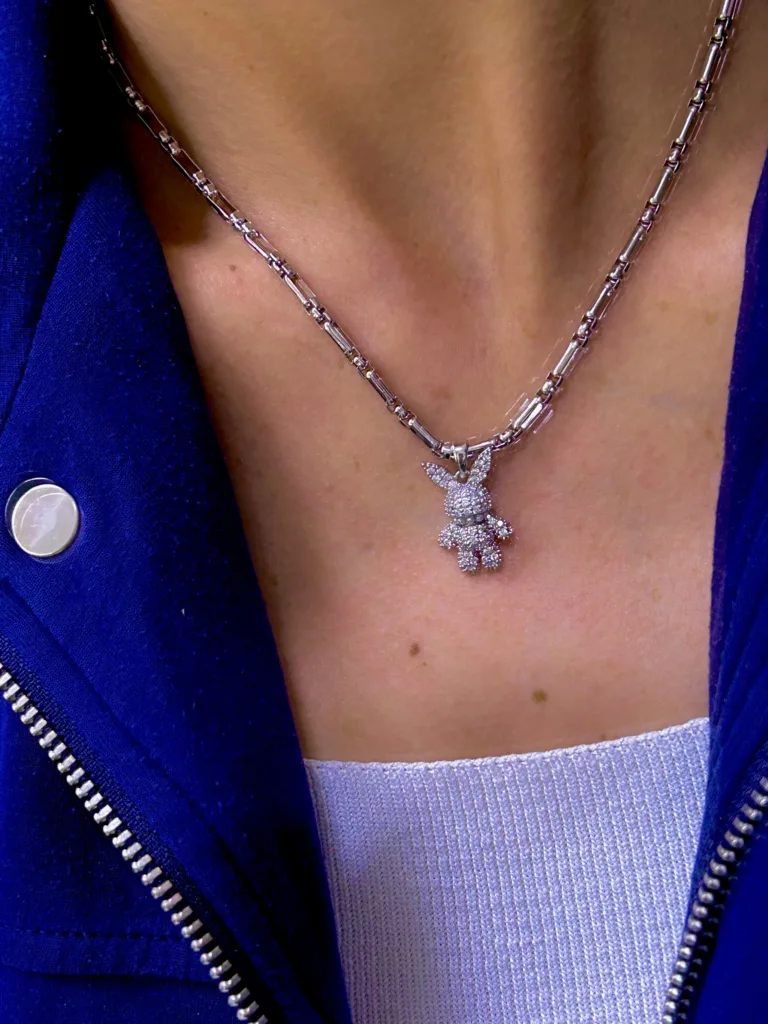 Çelik Gümüş Renk Beyaz Cef Yonca Kolye