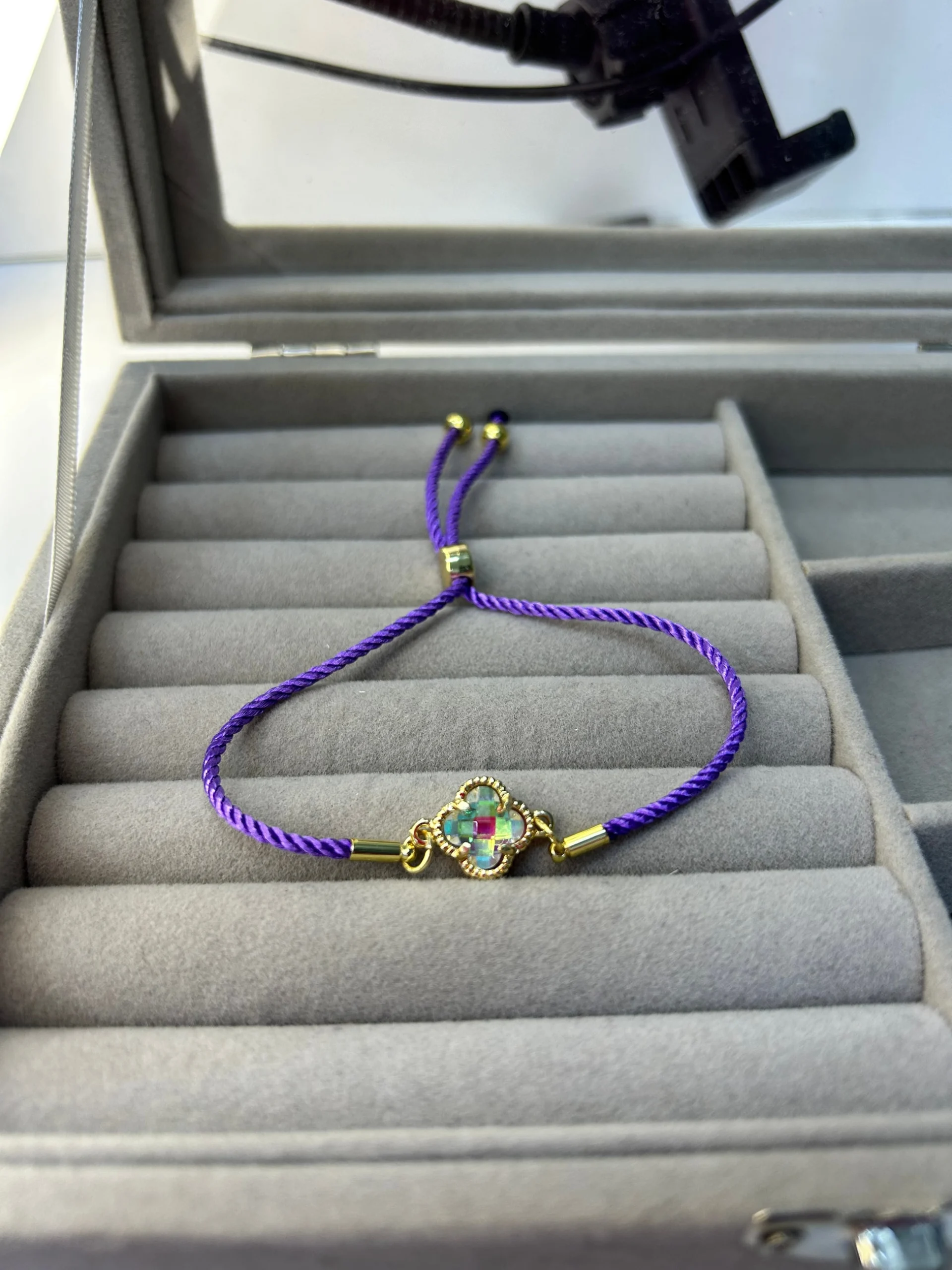 Asansörlü Lila Yonca İp Bileklik – Zarafetin ve Şansın Buluşması