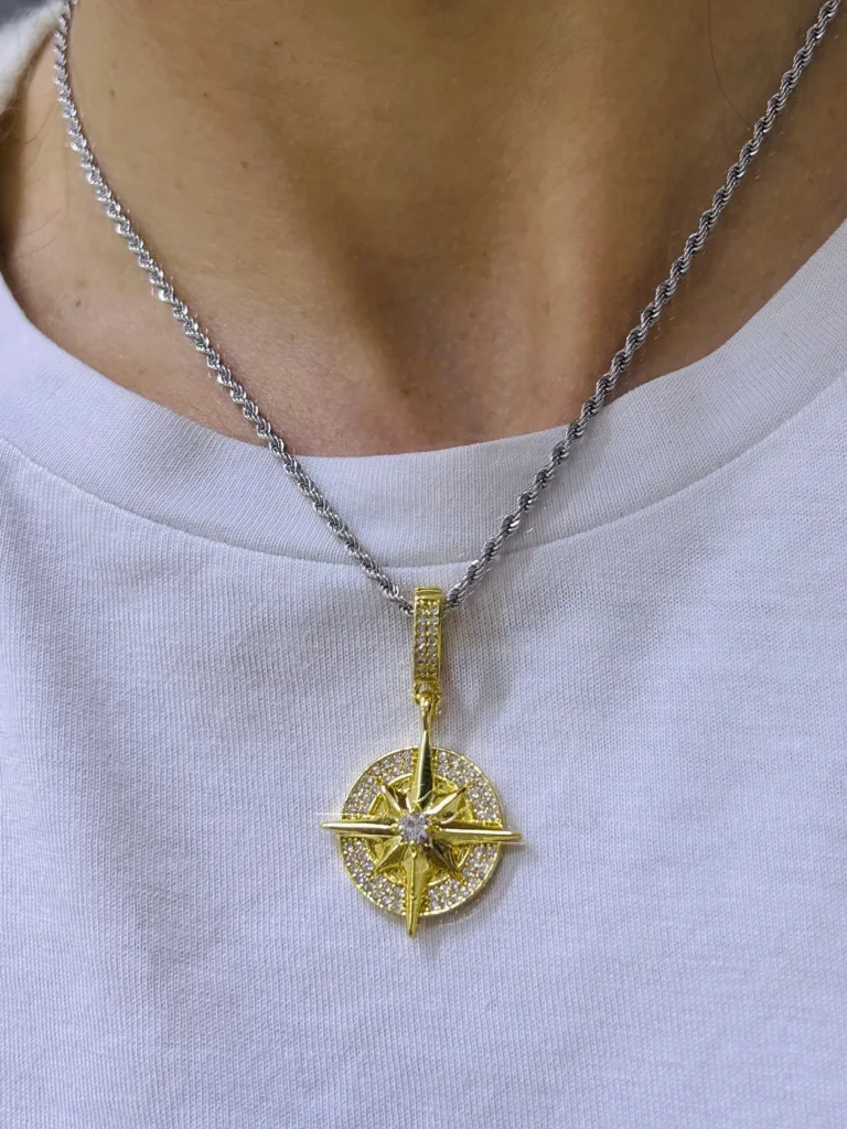 Çelik Gümüş Renk 2 li Yıldız Kolye