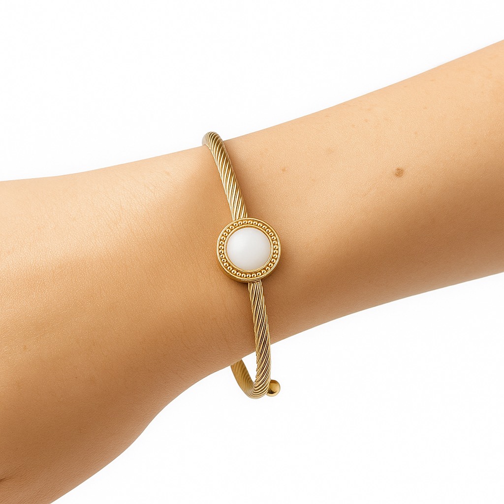 Çelik Gold Krem Taş Pndr Bileklik