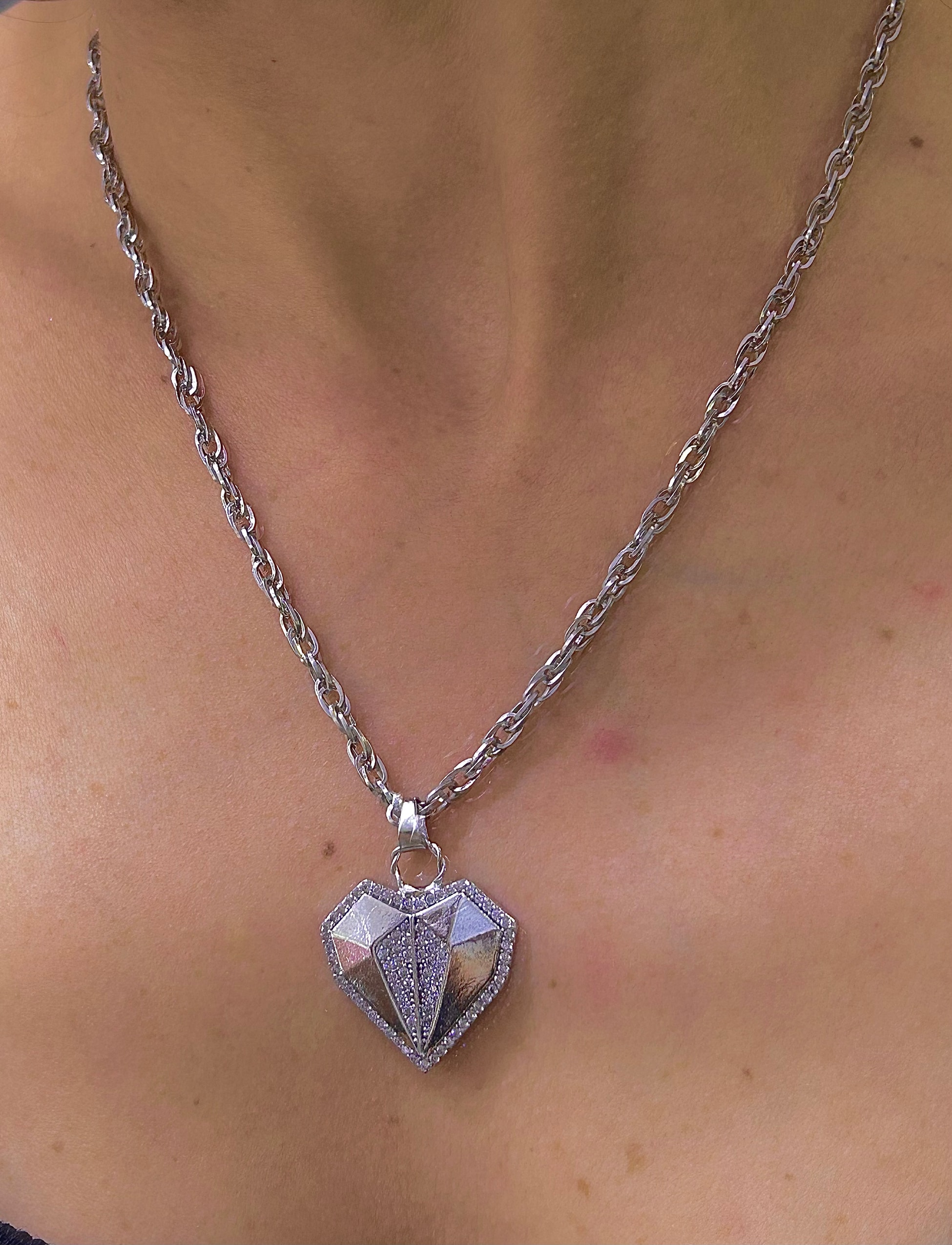 Çelik Gümüş Renk Kalın Kalp Kolye