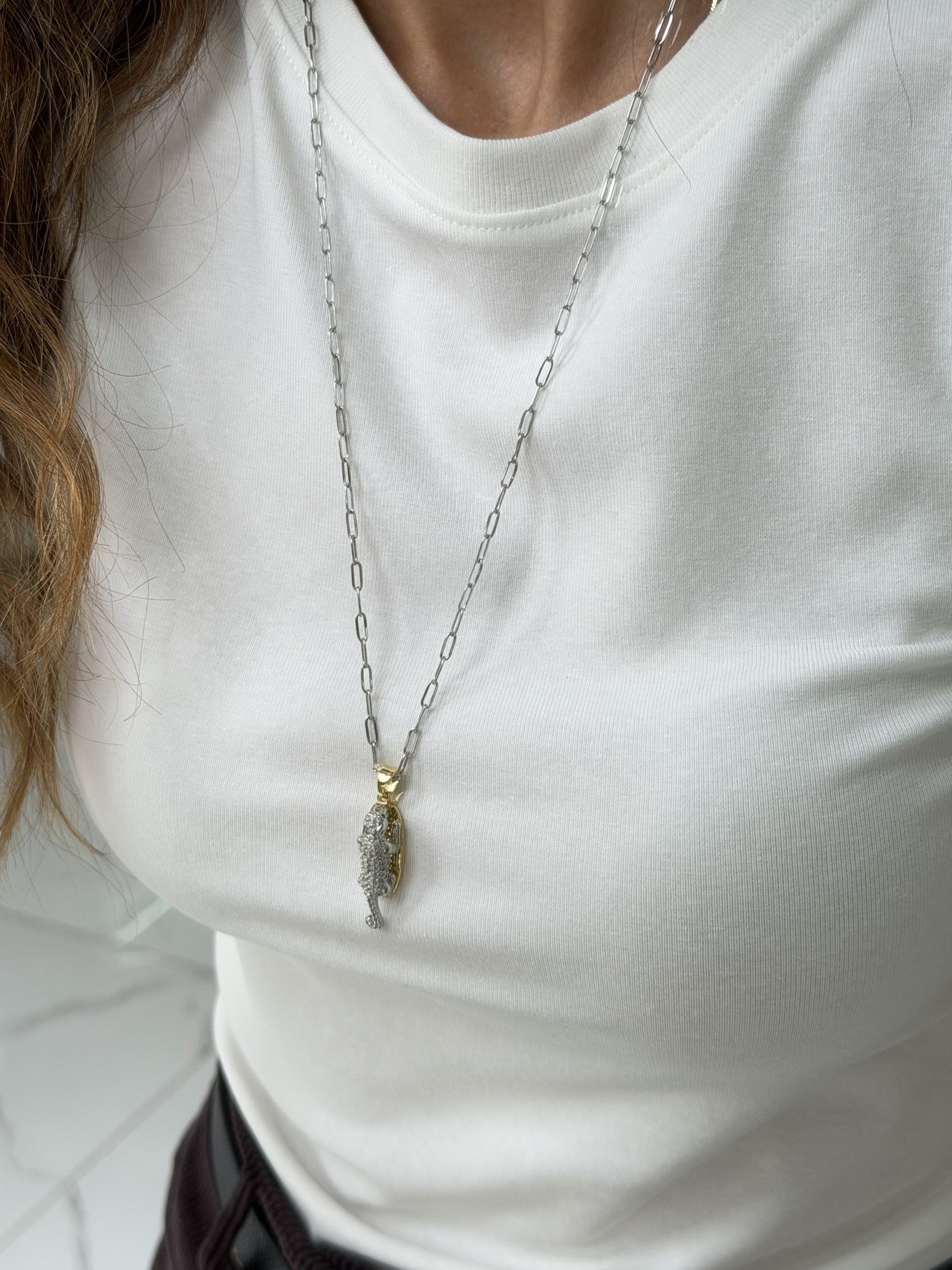 Çelik Gümüş Renk Uzun 60 cm Kaplan Kolye