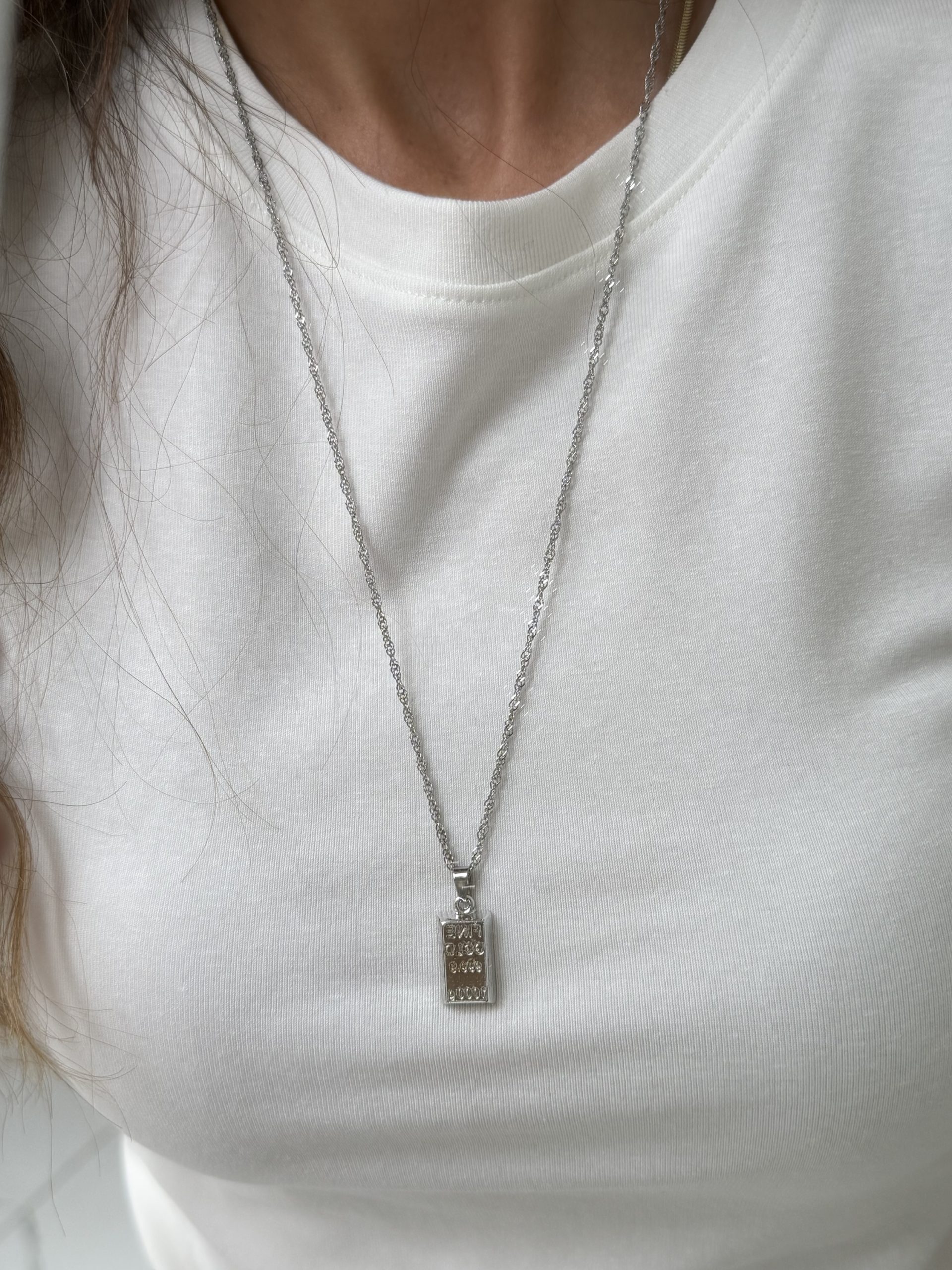 Çelik Gümüş Renk Uzun 60 cm Külçe Kolye
