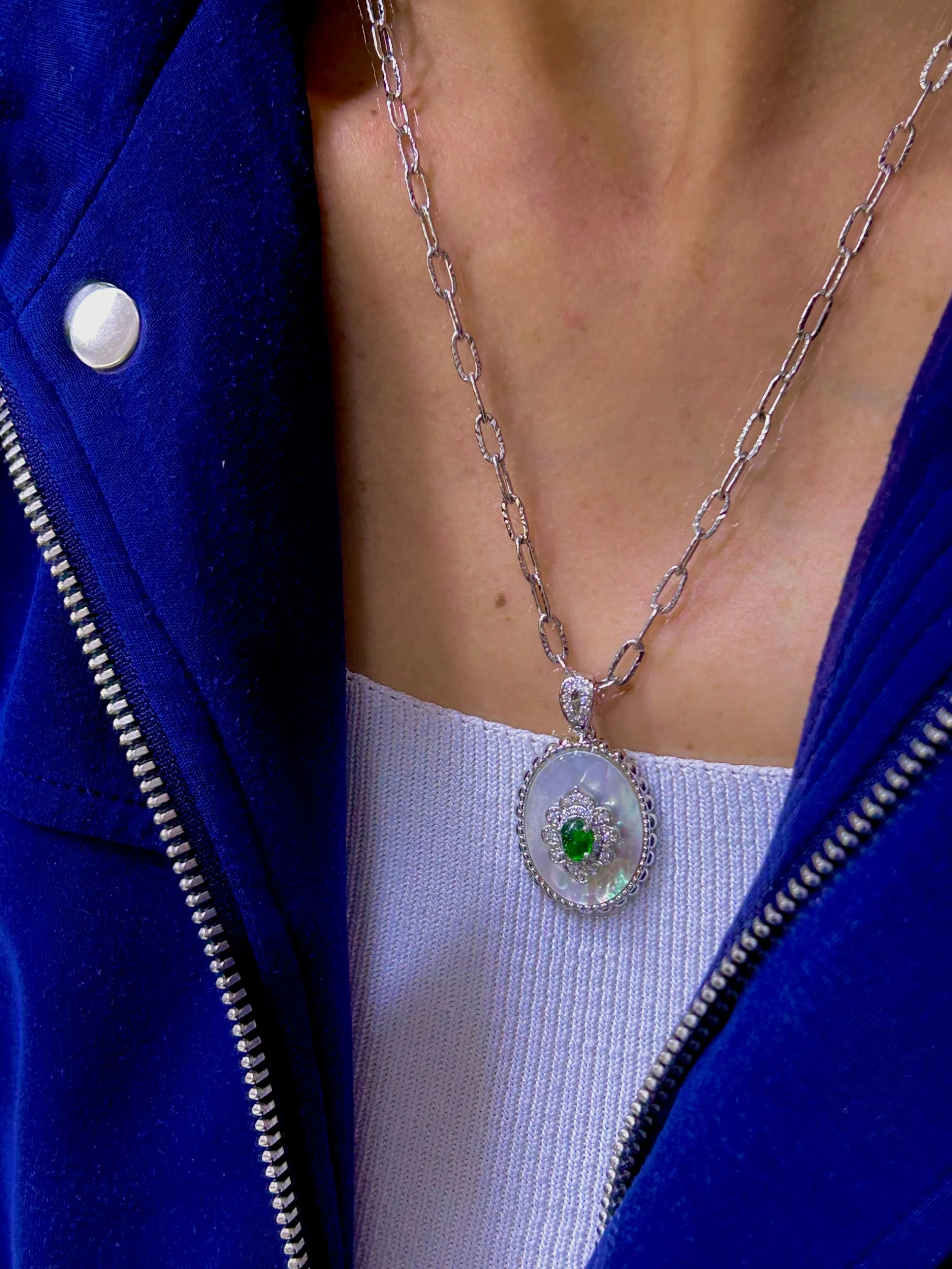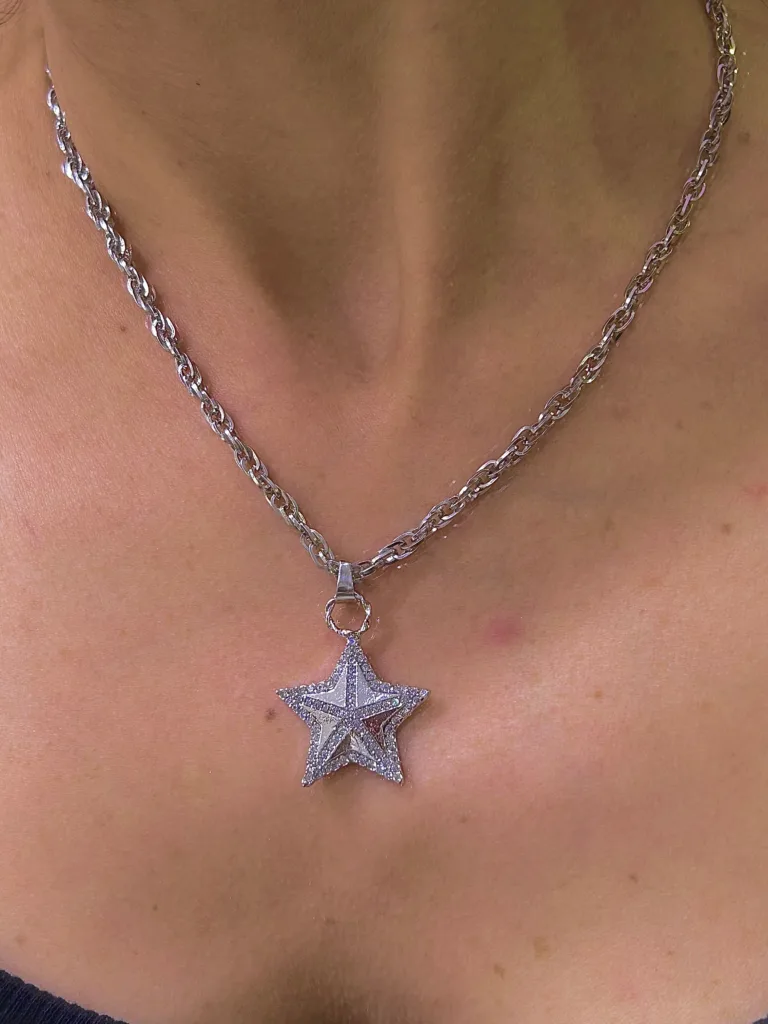 Çelik Gümüş Renk 2 li Taşlı Çerçeve Kalın Kolye