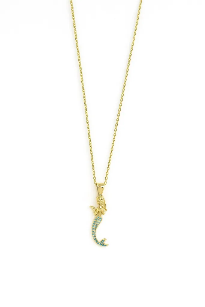 Çelik Mavi Taş Kalp Kolye Gümüş Renk