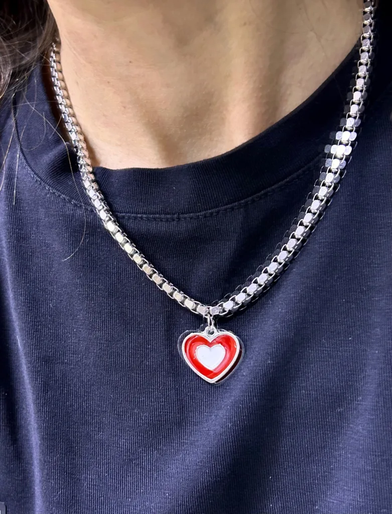 Çelik Kırmızı Taş Kalp Kolye Gümüş Renk