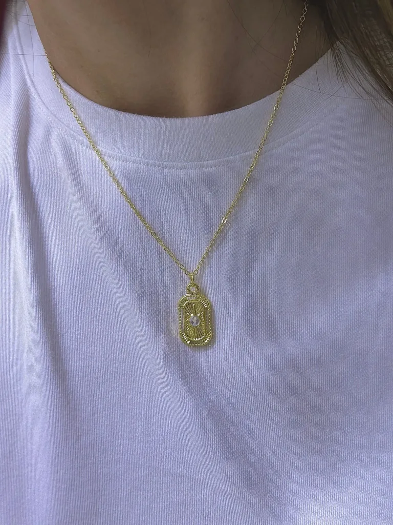 Çelik Gümüş Renk Güneş Firuze Kolye