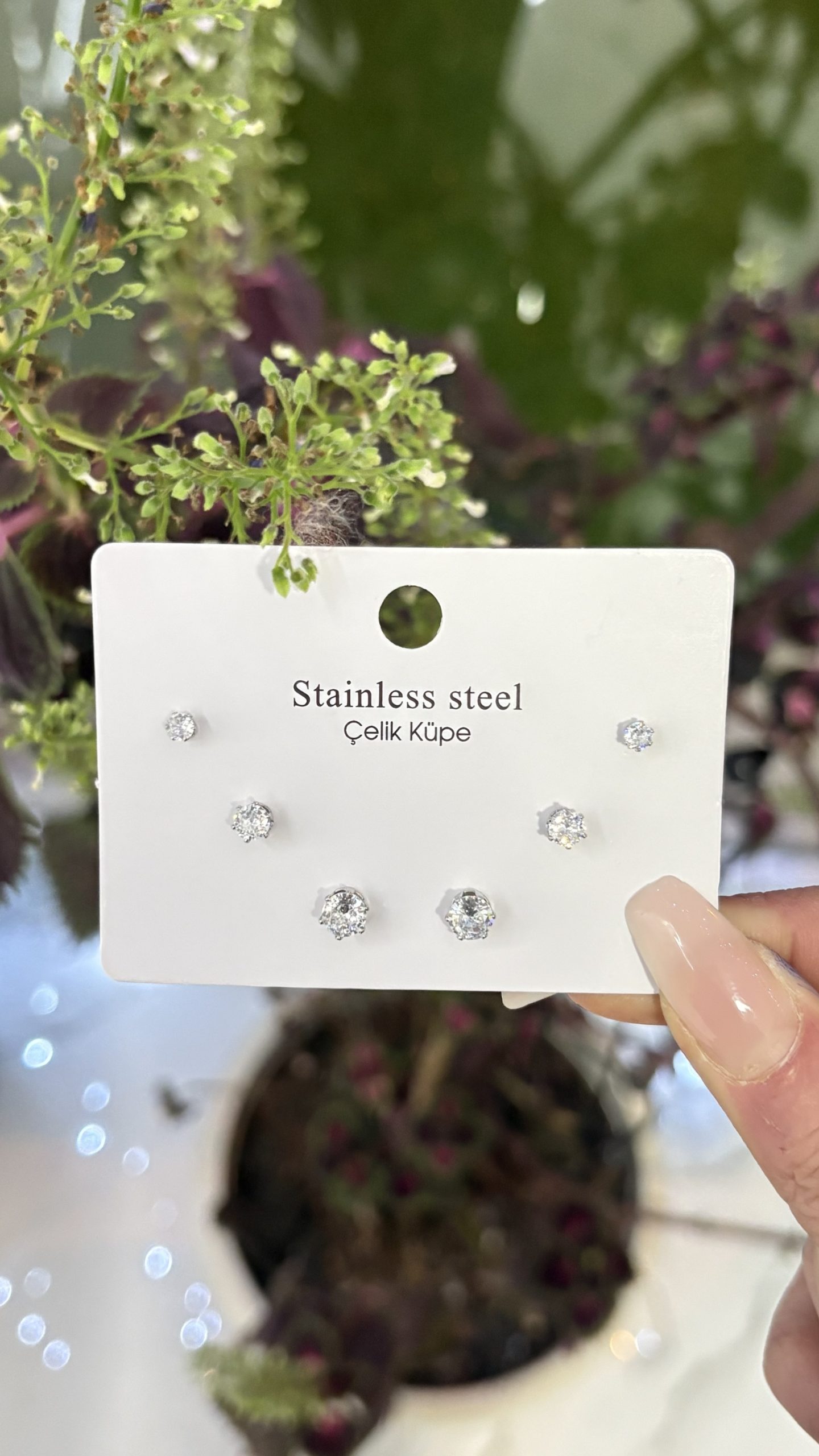 Çelik Zirkon Çoklu Küpe Gümüş Renk