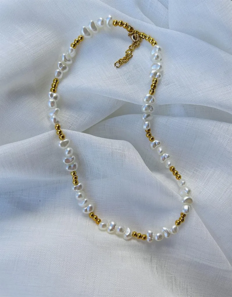 Kadın Siyah İncili Altın Kaplama Kalp Sevgi Kolye