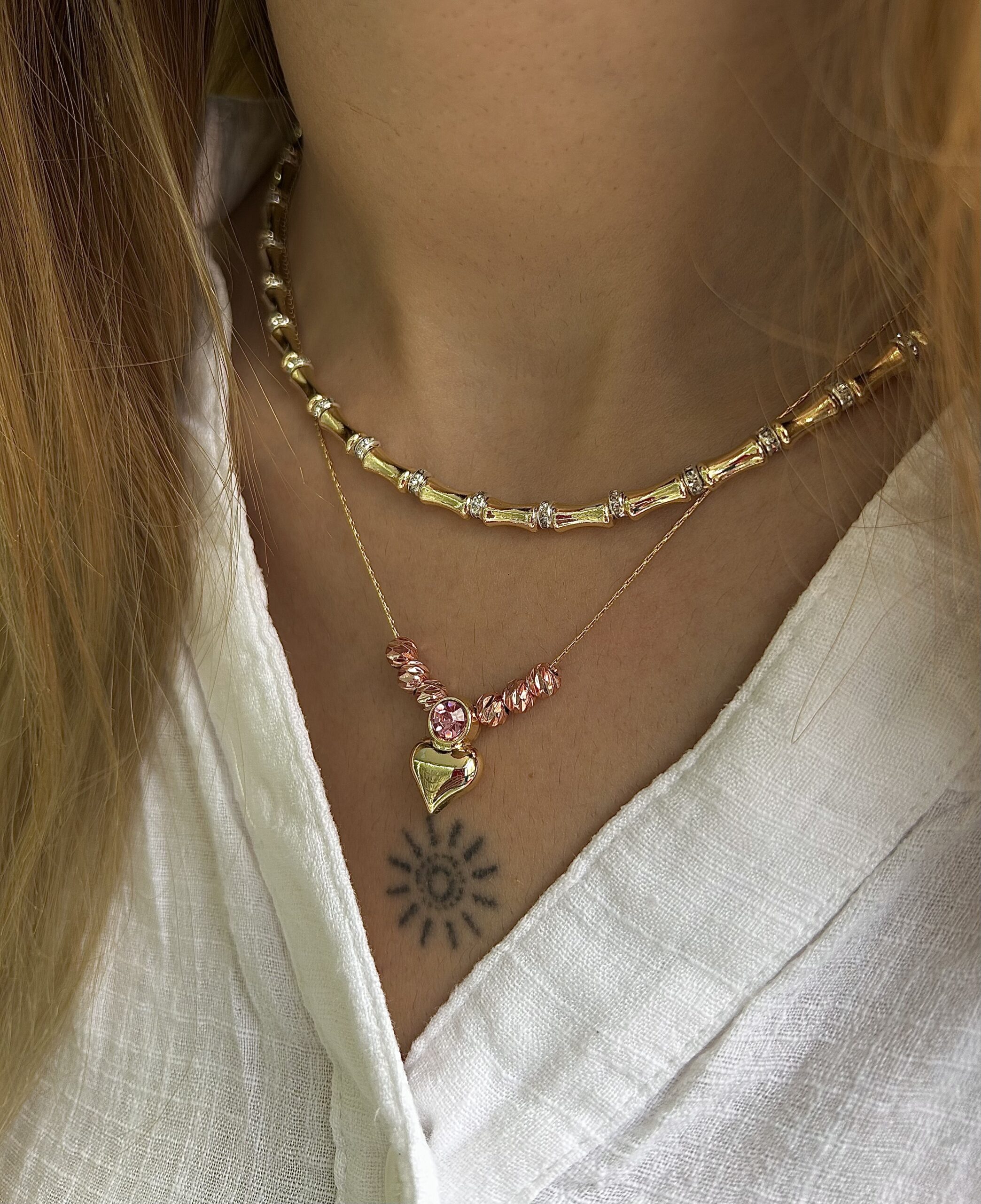 Vip 2 Lİ Taşlı Kalp Kolye Pembe