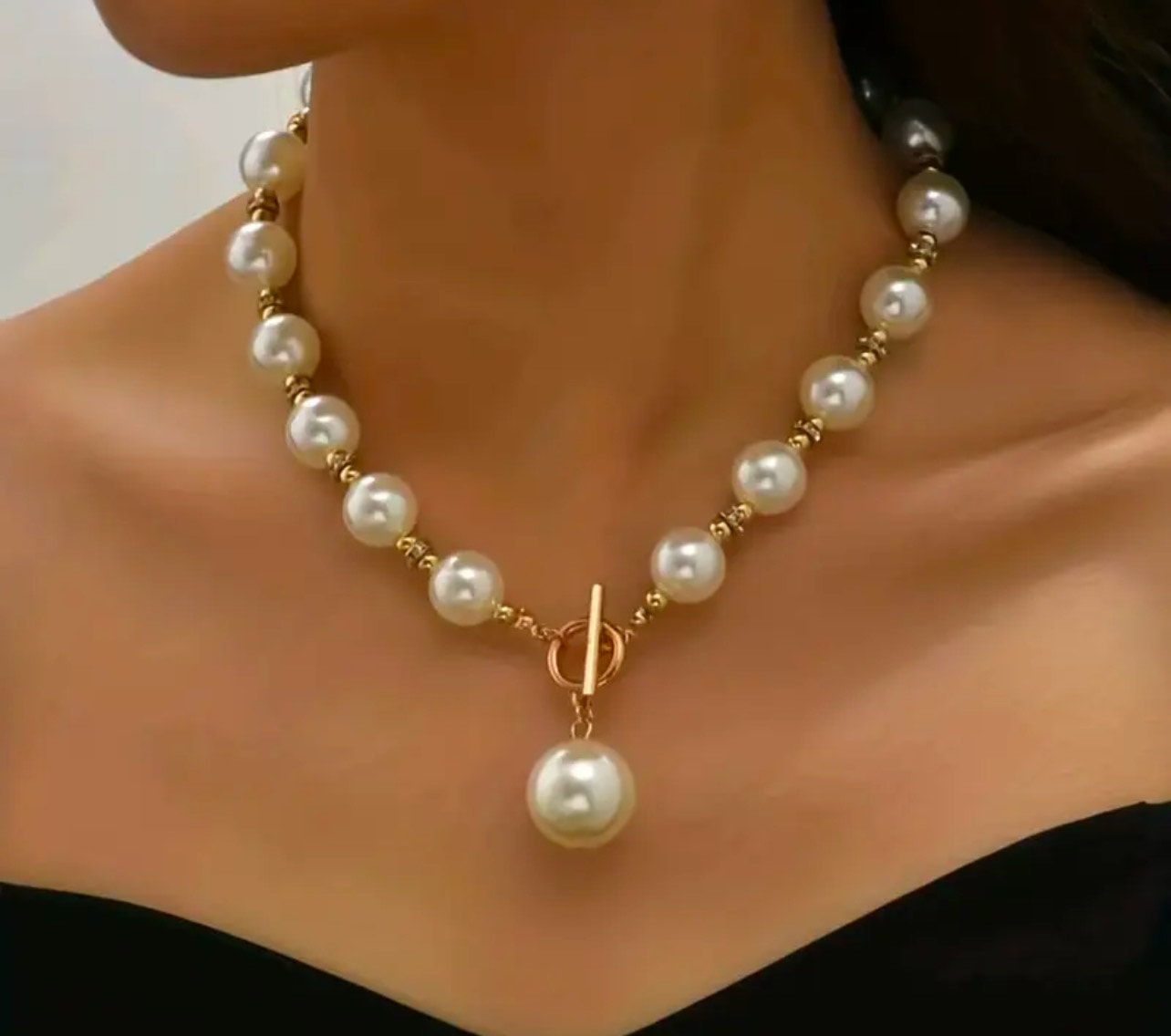 Vip Büyük İnci Taşlı T Kilit Kolye
