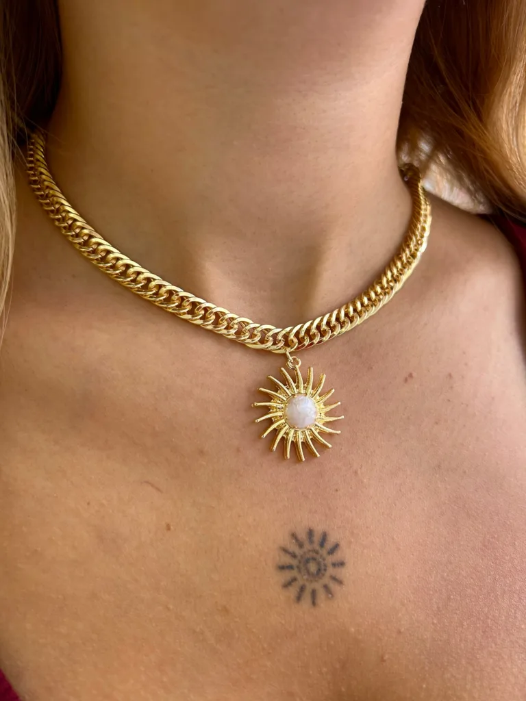 Çelik Gümüş Renk Beyaz Cef Yonca Kolye