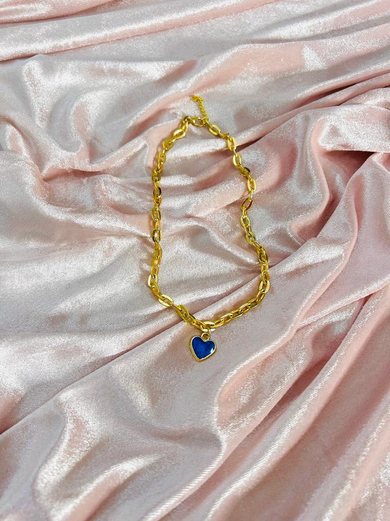 ✨ Vip Gold Zincir Mavi Kalp Charm Kolye ✨