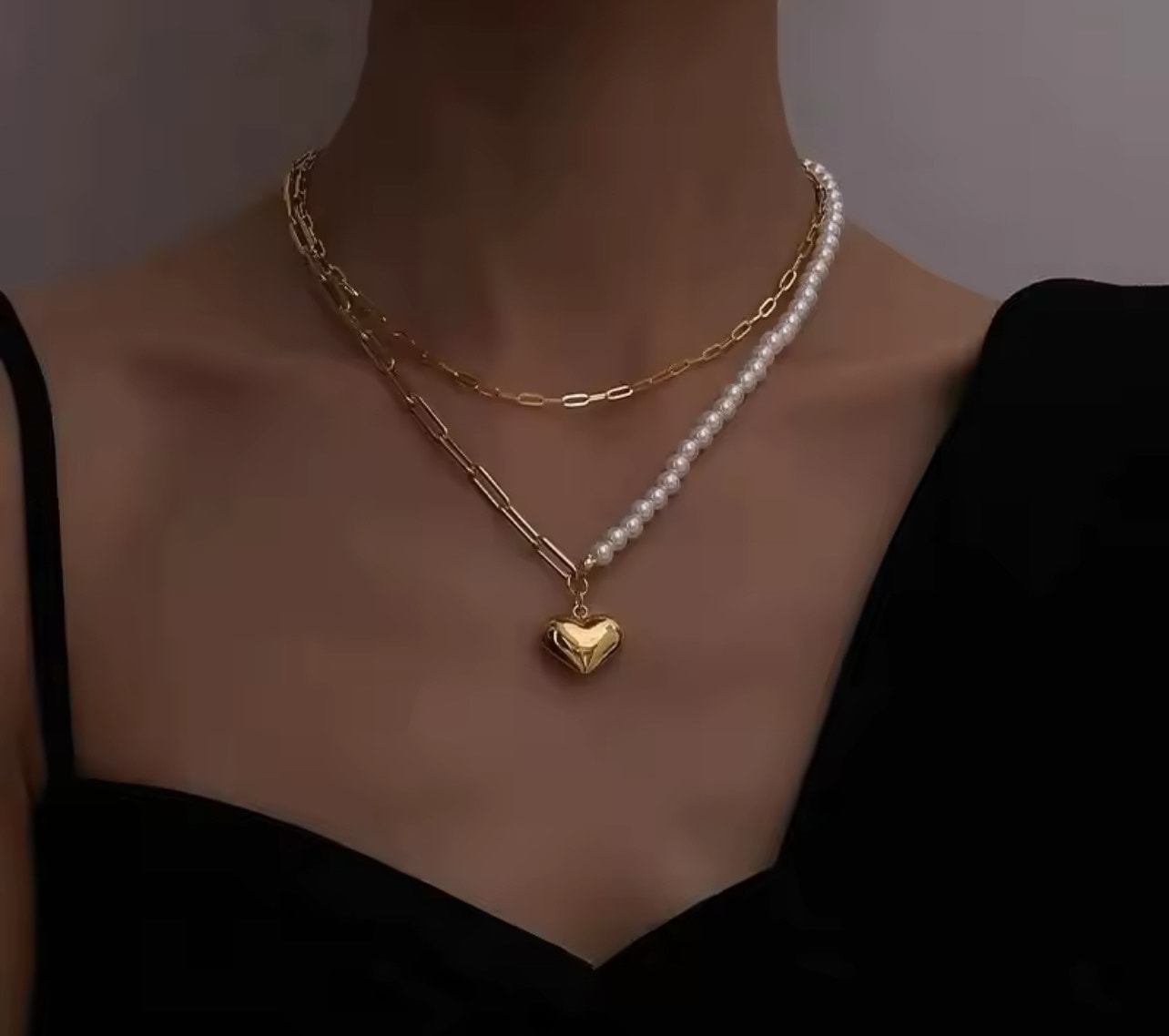 Vip İncili Zincir Tasarım Kalp Kolye