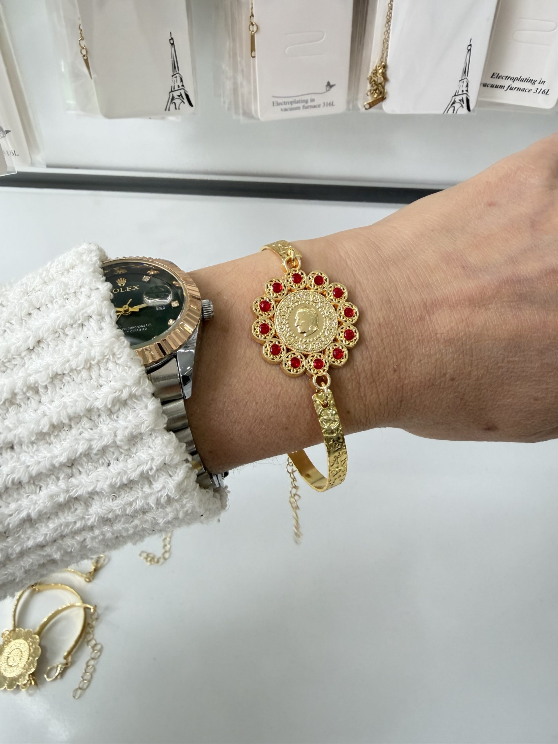 Vip Kırmızı Çeyrekli Kelepçe Bileklik